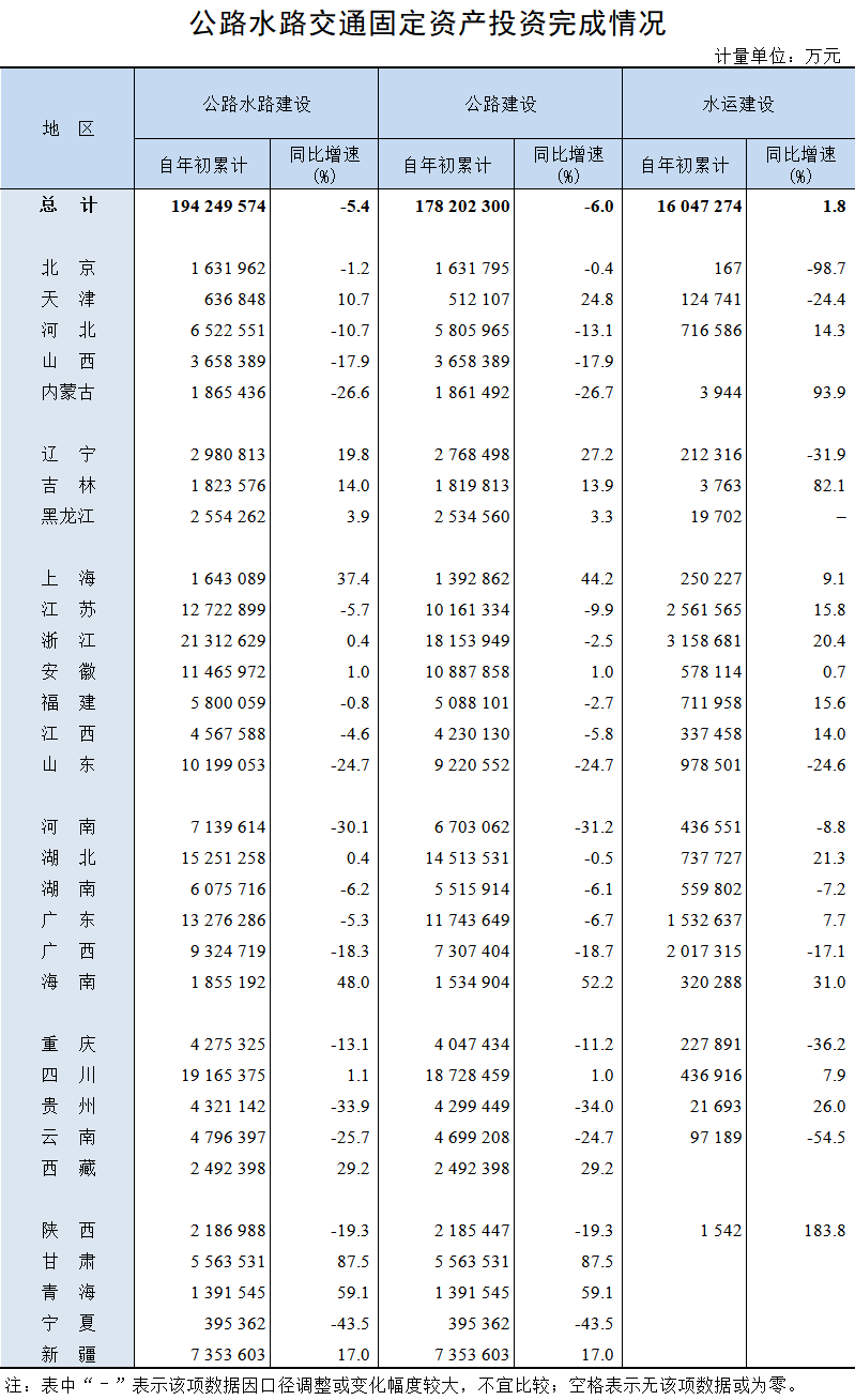 2025年1-9月公路水路交通固定资产投资完成情况