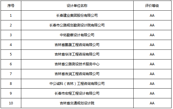 附件:2022年吉林省普通国省干线公路养护工程设计企业信用评价结果