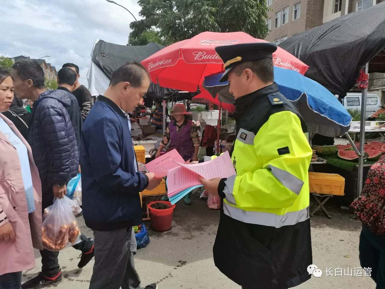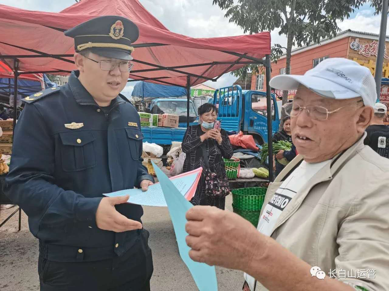 长白山管委会交通运输局执法人员向民众发放信用交通宣传单