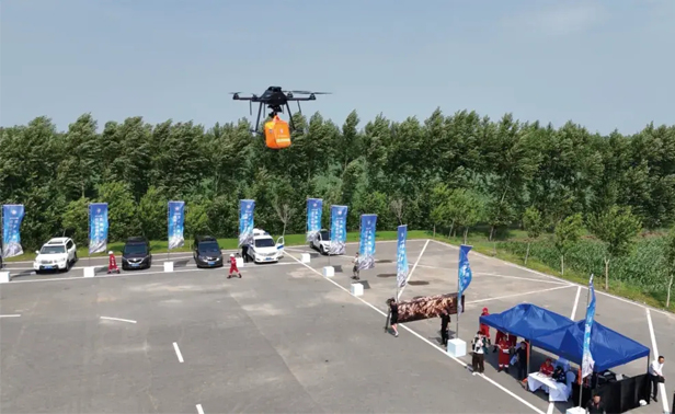 10:10,省交通应急中心派出两架专业无人机对现场灾情进行侦察,并完成应急物资定点投送任务。经过无人机侦察,发现通往灾区的道路有两处被洪水冲毁,指挥部确定救援方案——立即搭设应急便桥,确保应急物资运送车辆通行。