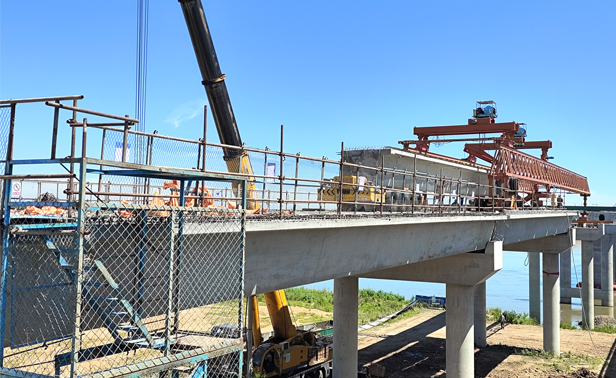 年初以来,榆树市交通运输局积极谋划重大项目建设,全力推动半拉山松花江特大桥建设,确保完成年度建设目标任务。截至目前,已顺利完成江中墩位桩及桥梁主跨施工,桥梁预制梁、剩余墩位桩及桥头引道施工按计划有序开展,桥头引道中具备条件的涵洞和挡墙部分已投入施工。(于林澄)